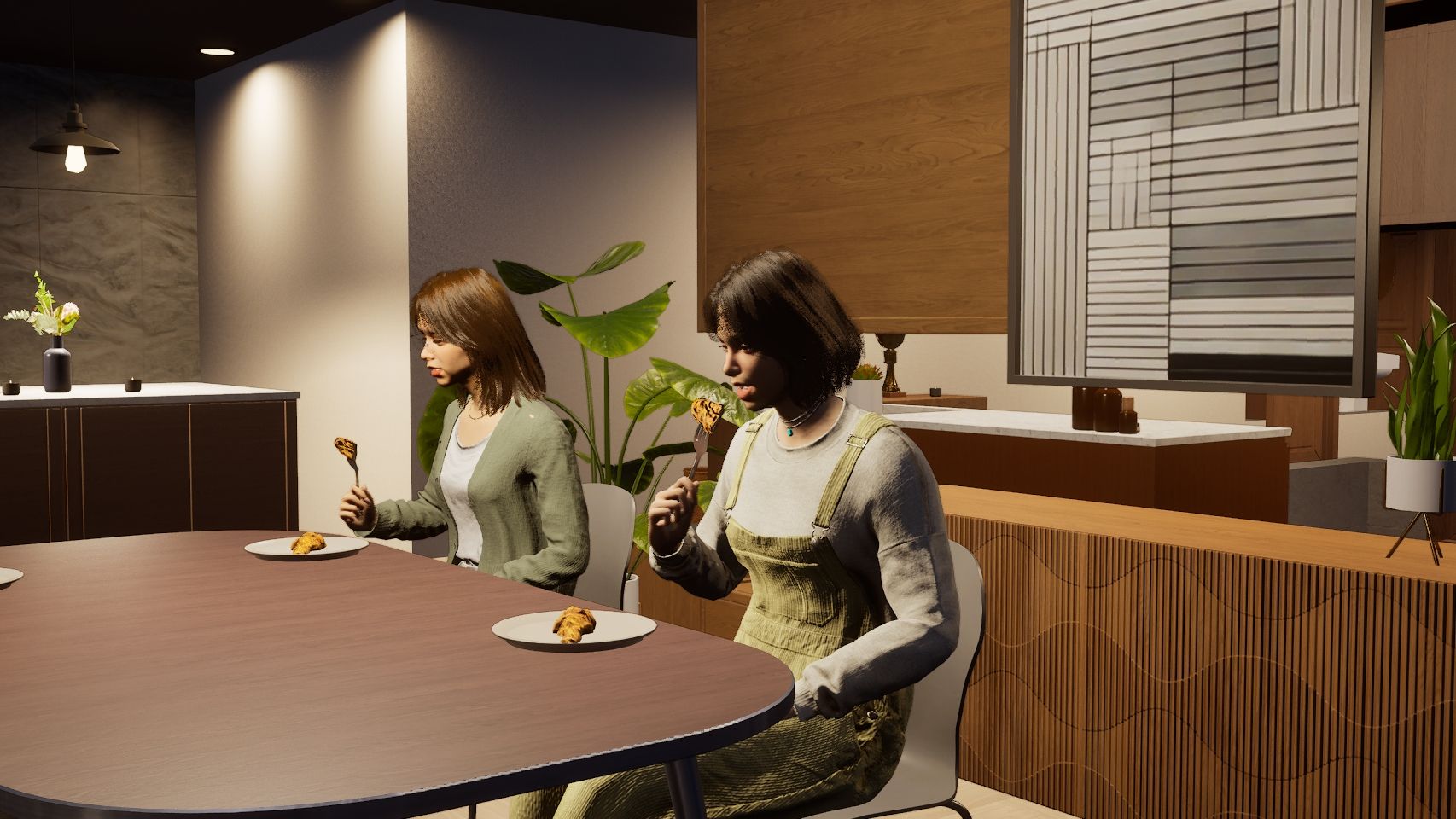 Do bardziej kosmetycznych opcji dodatkowych z użyciem AI możemy zaliczyć kreator wzorów ubrań oraz mebli, drukarkę 3D generującą obiekty w grze na podstawie zdjęć (tym naprawdę sporo się pobawiłam), śledzenie naszej twarzy przy pomocy telefonu, do nagrywania filmików z odpowiadającymi naszym ruchami warg czy zdjęć ze specyficznymi minami. Wszystkie te zastosowania sztucznej inteligencji mają jednak miejsce, gdy czas w naszej rozgrywce jest zatrzymany, a jakość naszego sprzętu wpływa głównie na czas oczekiwania na gotowe projekty. Technologiczne grono takich dodatków ma zostać w przyszłości poszerzone, jednak już teraz traktowałam je jako naprawdę miłe urozmaicenie.