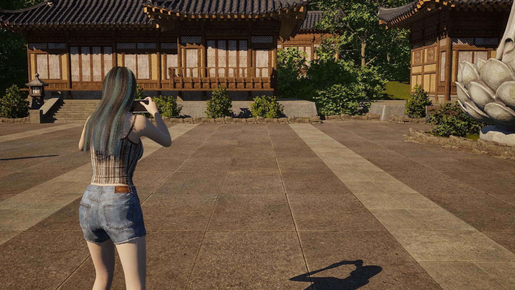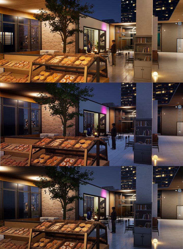 Od góry kolejno – Najwyższe, Średnie i Najniższe ustawienia graficzne. Największą rolę odgrywa tutaj światło.inZOI, Krafton, 2025.