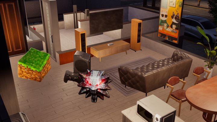 Ten bloczek z Minecrafta w swojej charakterystycznej perspektywie był zagraniem poniżej pasa z mojej strony... Łatwiejsze do przetworzenia, wiedźmińskie logo prezentuje się już jednak naprawdę przyzwoicie, jako dodatek do pokoju gracza.inZOI, Krafton, 2025.