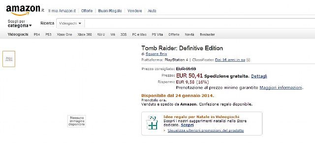 We włoskim oddziale sklepu Amazon pojawiła się gra Tomb Raider w wersji na konsolę PlayStation 4. Według opisu Definitive Edition zawierać ma wszystkie wydane do tej pory dodatki DLC i ukaże się 24 stycznia 2014 roku. Firma Square Enix nie ustosunkowała się jeszcze do tych doniesień.