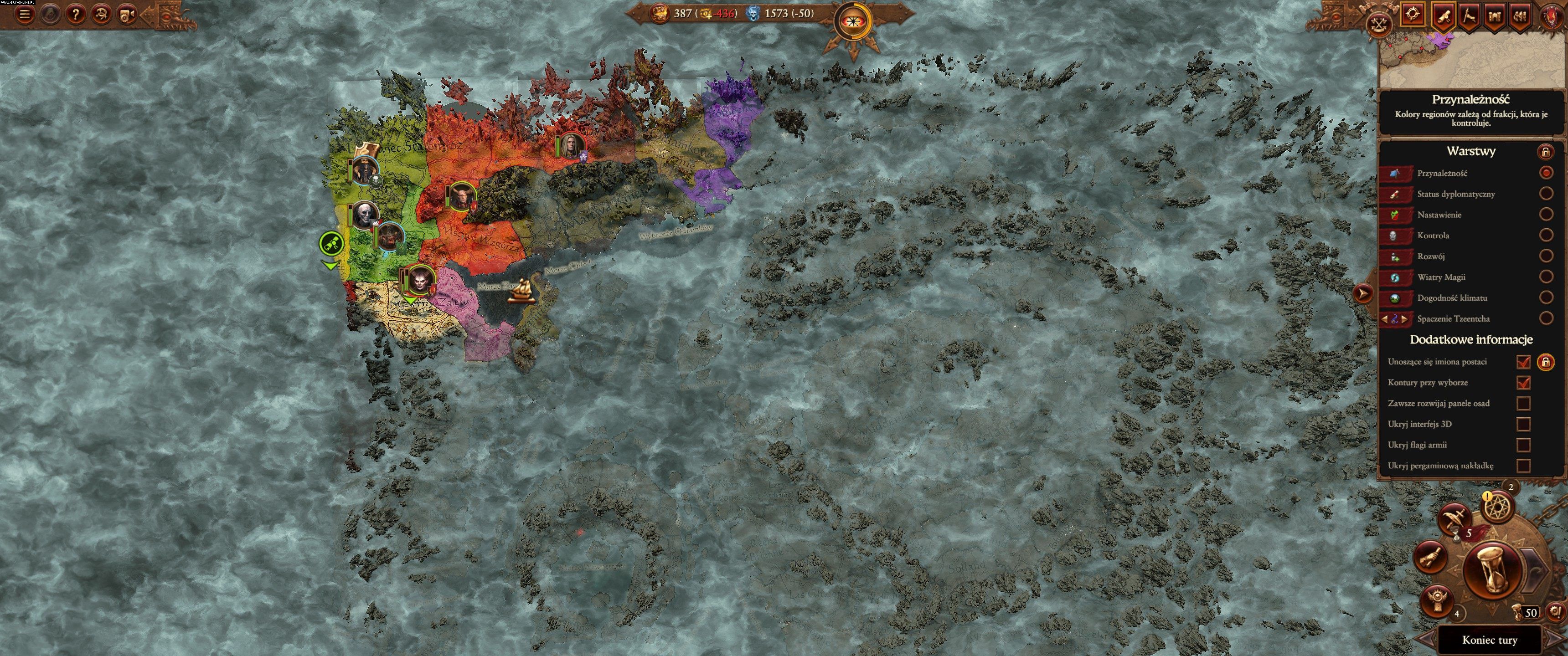 Oczywiście są kampanie łatwiejsze i trudniejsze. Przykładowo Valkia Krwawa, przedstawicielka boga Khorne’a z nowego DLC, Champions of Chaos, wydanego przy okazji premiery Immortal Empires, w krótkiej kampanii musi podbić lub zwasalizować 13 miast... rozsianych po całym kontynencie. W dodatku jednymi frakcjami gra się łatwiej, innymi trudniej, nie mówiąc już nawet o osobistych preferencjach. Wszystko zależy od frakcji, lokacji początkowej, warunków zwycięstwa, jak również od tego, co dzieje się na mapie. A bogowie, dzieje się naprawdę wiele.
