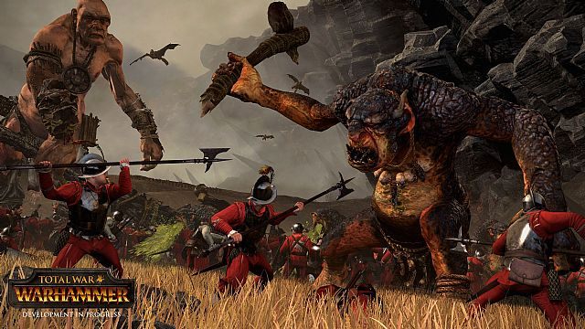 Zaprezentowany fragment rozgrywki przedstawiał tzw. Battle of Black Fire Pass (Bitwę o Przełęcz Czarnego Ognia), w trakcie której siły ludzkiego Imperium starły się z zielonoskórą hordą Waaagh!. O ile te pierwsze, dowodzone przez Franza Karla, składały się głównie z dość typowych jednostek, jak pikinierzy, kusznicy, machiny oblężnicze czy kawaleria (fakt, że dosiadająca gryfów), o tyle po drugiej stronie znalazły się chociażby trolle, olbrzymy, pająki czy elitarni czarni orkowie, prowadzeni (no, powiedzmy) przez Grimgora Ironhide’a. Fanów figurkowego Warhammer Fantasy Battle ucieszy podobieństwo komputerowych jednostek do modeli znanych z oryginału, dzięki czemu zachowany jest ów specyficzny, warhammerowy klimat. Ich wygląd możecie sami ocenić na zamieszczonych poniżej screenach, a animacje – jeśli wierzyć relacjom – biją na łeb wszystko, co mogliśmy zobaczyć we wcześniejszych odsłonach serii.