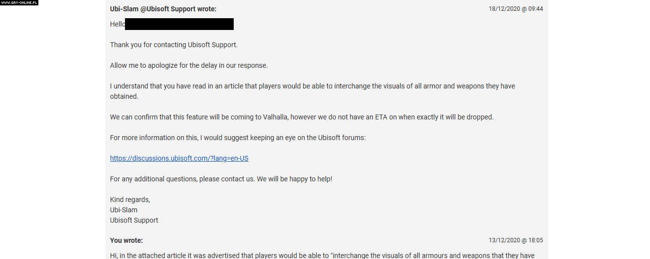 Od premiery minęło kilka tygodni, a w tej sprawie nadal nic nie wiadomo. Jeden z użytkowników Reddita zaniepokojony ciszą postanowił napisać do działu wsparcia Ubisoftu i uzyskał odpowiedź, że stosowna aktualizacja nadal jest w planach, ale niestety pracownik nie jest w stanie podać, kiedy miałaby się pojawić.