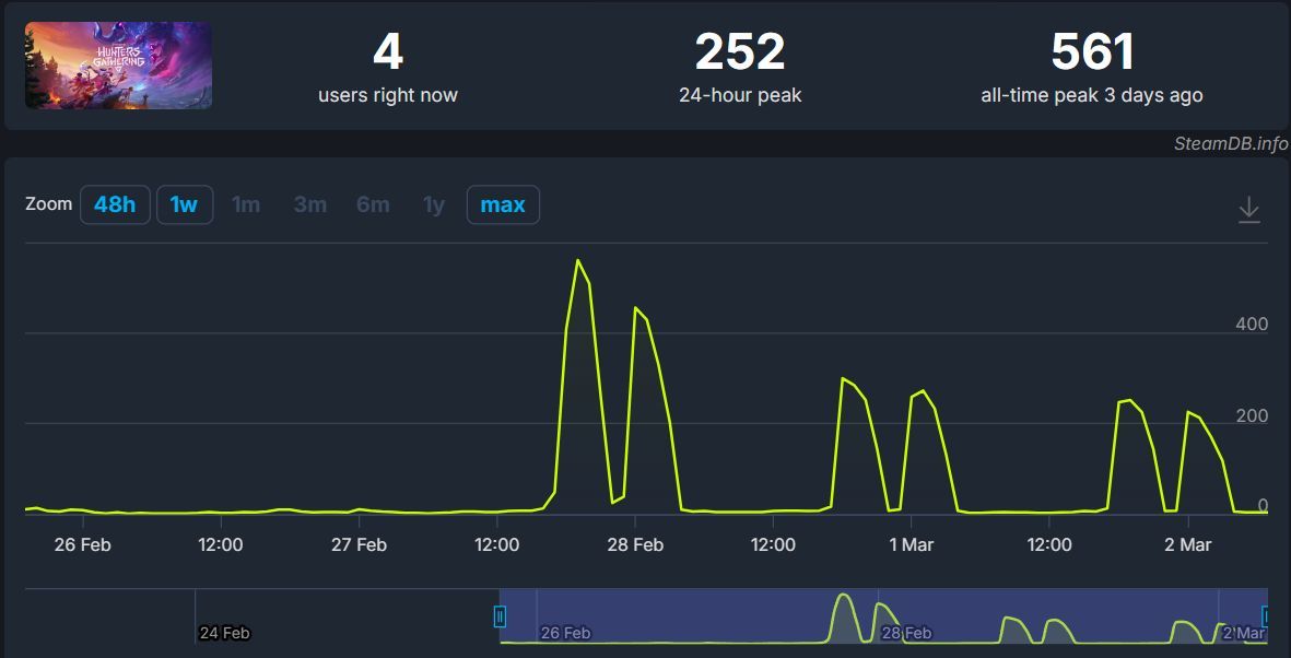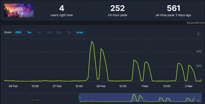 Szczytowy moment miał miejsce w dniu uruchomienia testów – według serwisu SteamDB w grze na platformie PC przebywało wówczas 561 graczy jednocześnie. Następnego dnia „peak” był już wyraźnie niższy i wyniósł równe 300 osób. W testach brali udział także posiadacze konsoli PS5 – w tym przypadku nie znamy danych, ale możemy podejrzewać, że również nie są one oszałamiające.