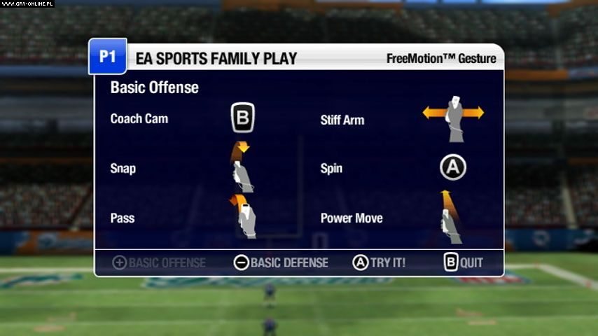 Rozpoczynając zabawę w najnowszych tytułach z oferty EA SPORTS, można będzie dokonać wyboru pomiędzy trybem „Advanced” (dla zaawansowanych) i „Family Play” (dla niedoświadczonych). Ci, którzy zdecydują się na opcję zaawansowaną, będą za pomocą tzw. Nunchuka i Wii-lota kontrolować wszystkie możliwe aspekty gry. Natomiast gra w trybie „Family Play” polegać będzie wyłącznie na posługiwaniu się Wii-lotem i wydawaniu zawodnikom podstawowych poleceń – takich jak strzelanie, omijanie i rzucanie. W tym czasie, konsola pełnić będzie rolę niewidzialnego pomocnika w drużynie. Takie rozwiązanie umożliwia stopniowe zdobywanie umiejętności i korzystanie z bardziej zaawansowanych funkcji gry, gdy tylko początkujący fani wirtualnej rozrywki zapragną stawić czoło nowym wyzwaniom.