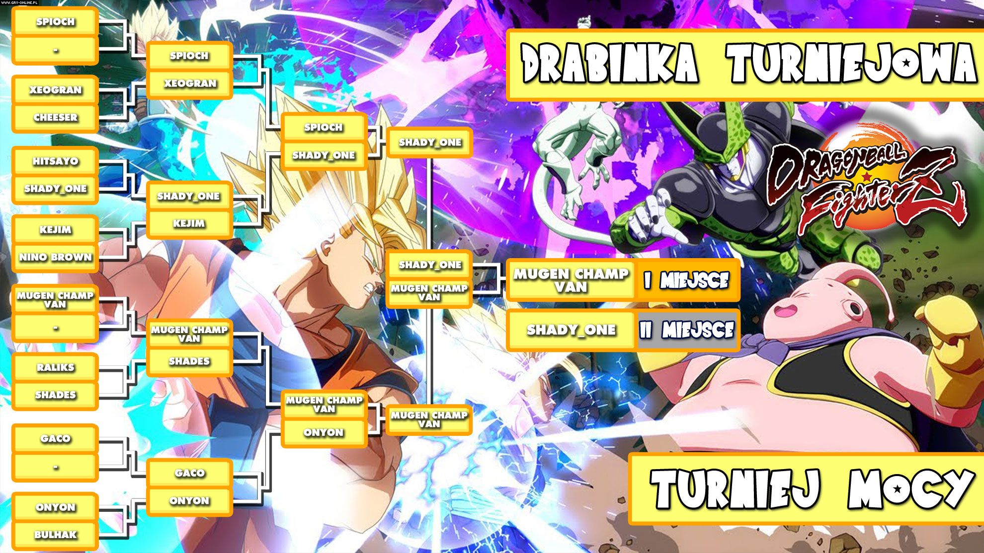 Po wielu zaciętych walkach ostatecznie w finale zmierzyli się ze sobą MugenChampVan oraz Shady_One. Zarówno pierwsze, jaki drugie starcie wygrał MugenChampVan, ale oba pojedynki dostarczyły sporo emocji i były niemal równie epickie jak walki znane z anime. Finał oraz wszystkie pozostałe mecze możecie obejrzeć poniżej.
