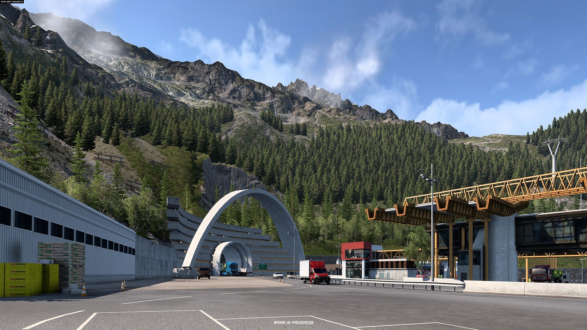 SCS Software zwraca szczególną uwagę na bardzo znany tunel Mont Blanc. Łączy on francuską miejscowość Chamonix z Doliną Aosty we Włoszech. Ten charakterystyczny obiekt, przed którym znajduje się wysoki biały łuk, oraz inne materiały prezentujące odświeżoną mapę Szwajcarii zobaczycie poniżej.
