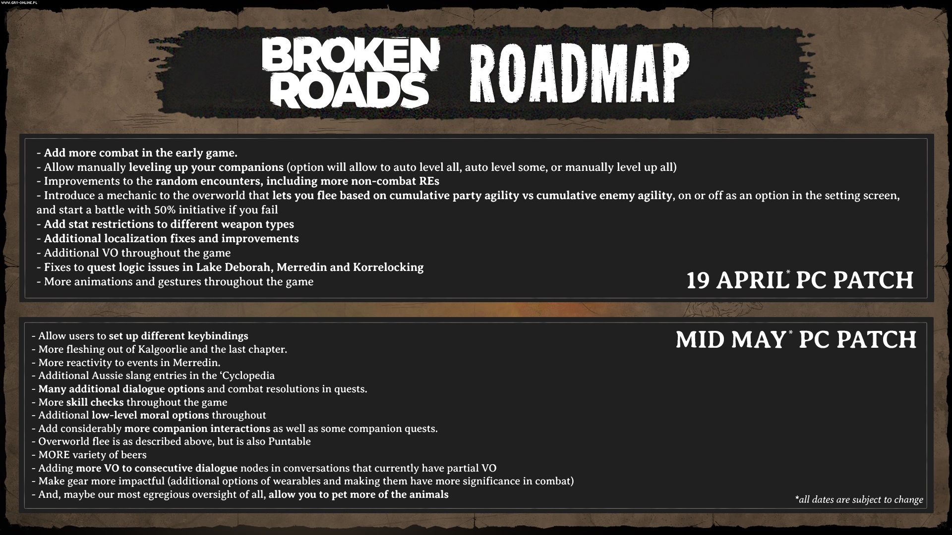 Nie są to jedyne usprawnienia zaplanowane przez australijskiego dewelopera. Zespół pracuje także nad długoterminowymi poprawkami i ma nadzieję, że uda mu się wyeliminować największe bolączki Broken Roads. Gra stanowczo potrzebuje tych zmian: tytuł wzbudził małe zainteresowanie na Steamie, a i nieliczni nabywcy gry bynajmniej nie są zachwyceni (tylko 43% opinii użytkowników jest pozytywnych).