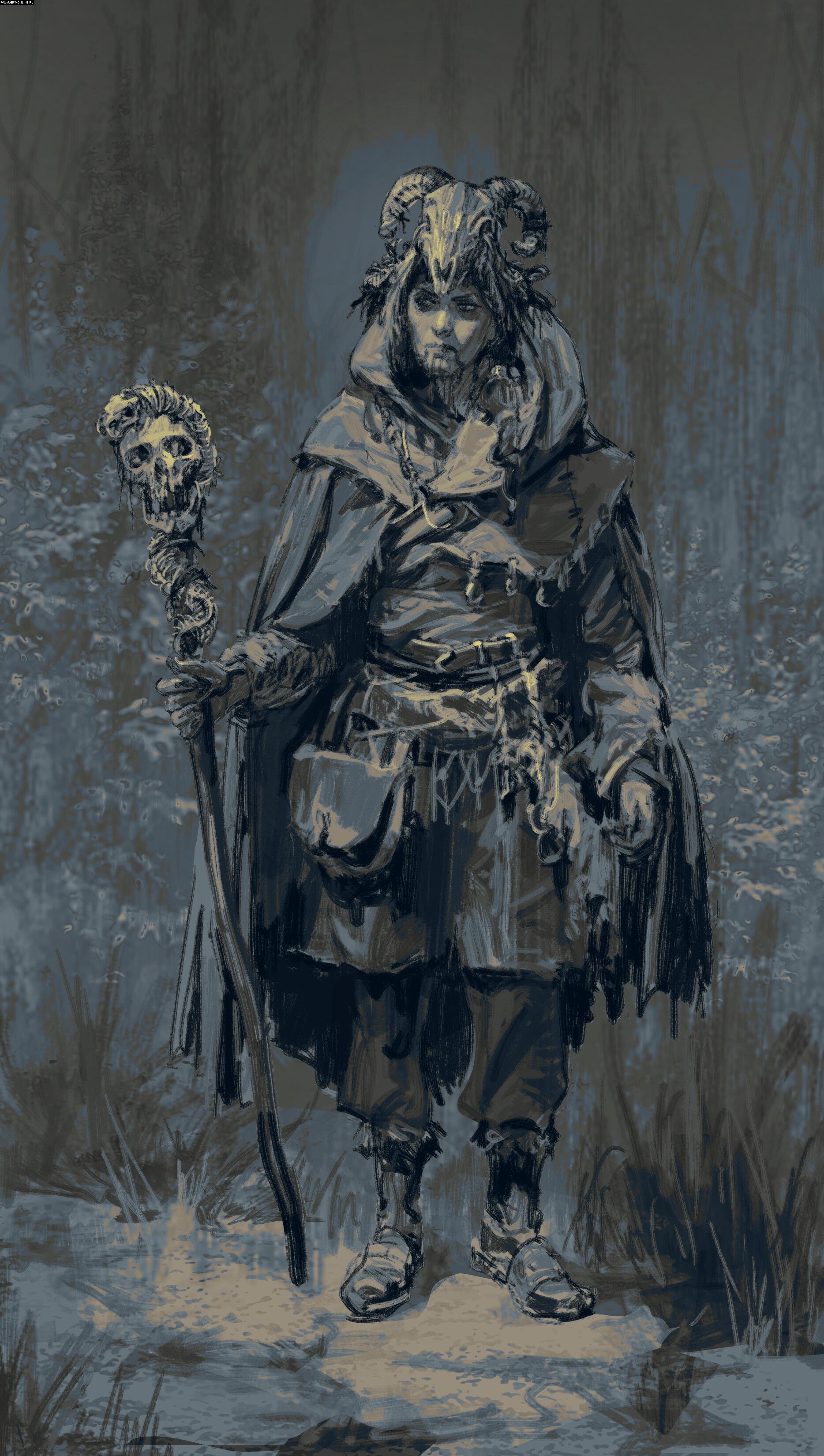 Co możemy zobaczyć na opublikowanych przez niego grafikach? Na pierwszej widoczna jest odziana w zbroję i dzierżąca miecz kobieta, która siedzi na truchle ubitego (najpewniej samodzielnie, jako że broń ocieka krwią) smokopodobnego gada. Druga przedstawia kobietę ubraną w prymitywny, niemalże prehistoryczny strój (składają się na niego kościane ozdoby i skórzane szaty), natomiast trzecia prezentuje... jeszcze jedną kobietę, której ubranie (a zwłaszcza nakrycie głowy) oraz atrybut w postaci kostura zwieńczonego czaszką pozwala przypuszczać, że jest szamanką. Całość zatytułowano natomiast Kobiety północy.