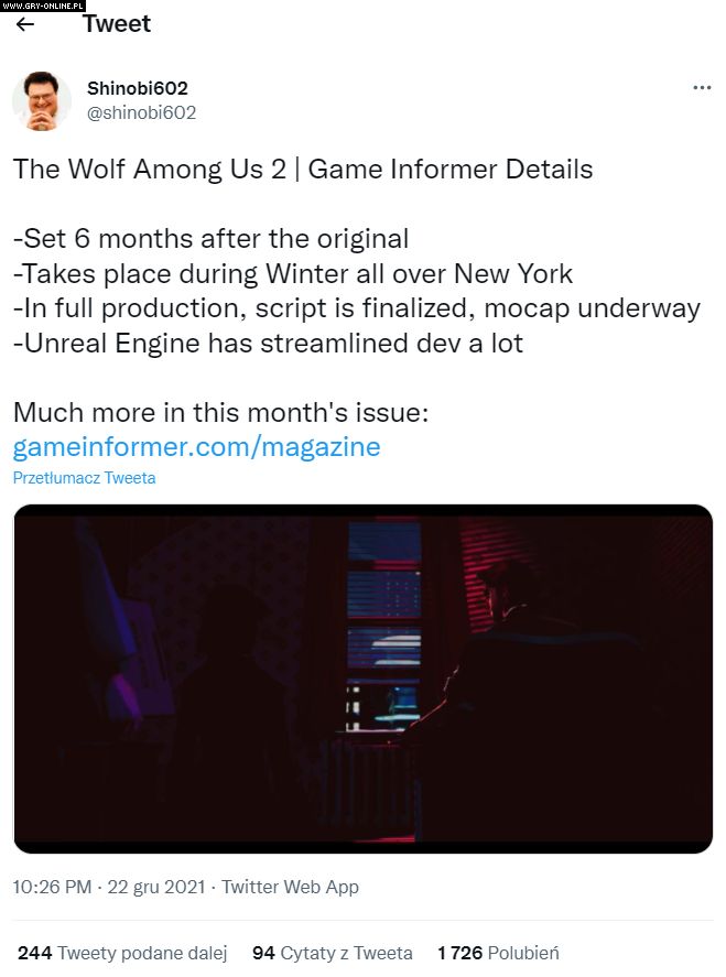 W najnowszym numerze magazynu Game Informer ujawniono kolejne detale dotyczące The Wolf Among Us 2. Dowiedzieliśmy się m.in. tego, kiedy i gdzie będzie toczyć się akcja gry. Podano również, że produkcja idzie pełną parą.