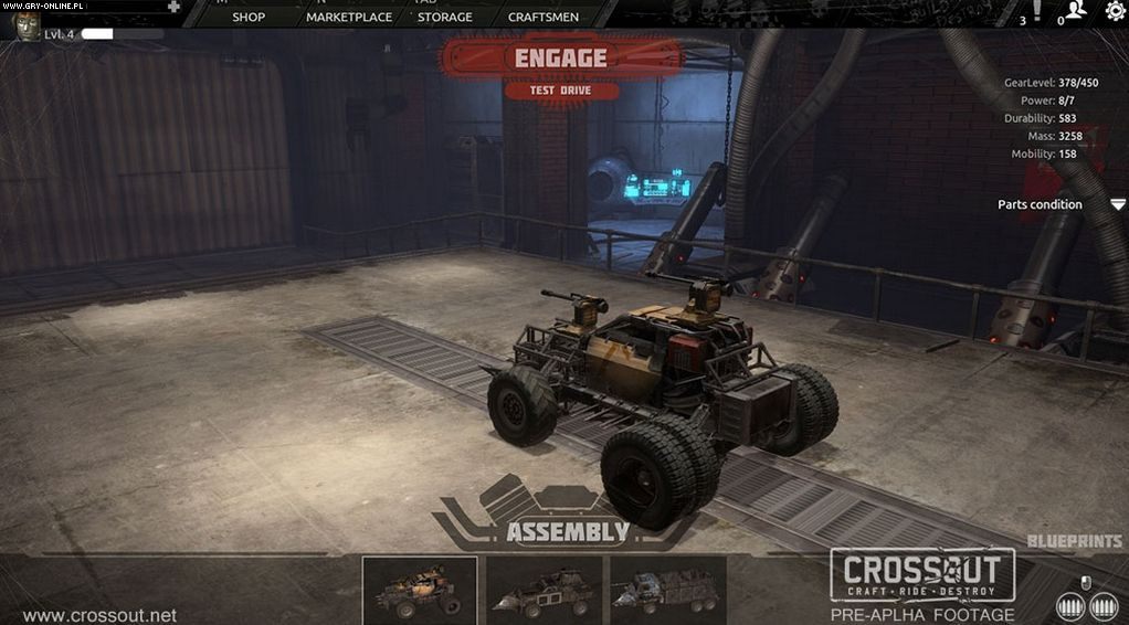 Studio Gaijin Entertainment, znane z darmowego MMO War Thunder, ogłosiło nową produkcję, tworzoną we współpracy ze studiem Targem Games – Crossout. Tym razem zamiast pól bitewnych II wojny światowej odwiedzimy świat po apokalipsie, a samoloty zostaną zastąpione przez pojazdy lądowe. Gra ma oferować duże możliwości rozbudowy własnego wehikułu, pozwalając na stworzenie zarówno malutkich powozów, jak i ogromnych monster trucków czy zbrojnych platform wykorzystujących pola antygrawitacyjne. Twórcy obiecują tysiące sposobów zmiany wyglądu i parametrów pojazdu, począwszy od kształtu i opancerzenia, przez uzbrojenie (m.in. piły mechaniczne, rakiety), systemy wspomagające (drony czy generatory pola ukrywającego), po wszelkiego rodzaju dodatki estetyczne.