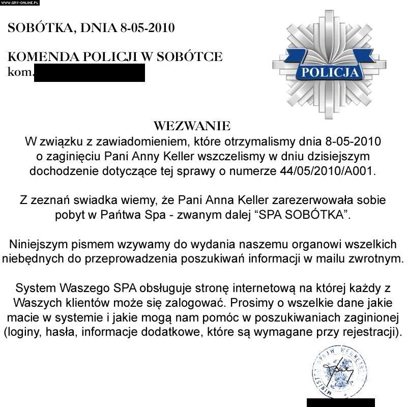 Pismo „komendanta policji”, czyli jednego z uczestników gry.