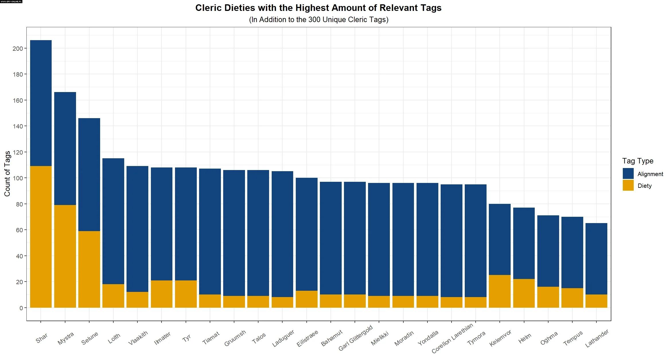W tym przypadku zdecydowanie prowadzi bogini Shar, która ma 109 specjalnych tekstów. Nieco mniej, bo 79 dialogów oferuje wybór Mystry. Oczywiście, z uwagi na specjalności bogiń, liczba dialogów nie powinna nikogo dziwić, gdyż są one niezwykle użyteczne z uwagi na fabułę całej gry.