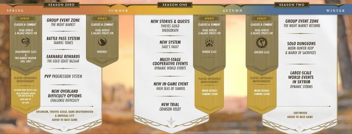 W czym tkwi haczyk? ESO przechodzi na model sezonowy, który trwać ma 3 miesiące każdy, oraz wprowadza Tamriel Pass. To ichnia przepustka bojowa, a jej podstawowa wersja będzie darmowa dla wszystkich w trakcie trwania sezonu. Oczywiście pojawi się wersja premium, ale w środku znajdziemy jedynie przedmioty kosmetyczne. W kwietniu startuje sezon 0, a już w marcu cztery DLC zostaną włączone do podstawowej wersji MMO.