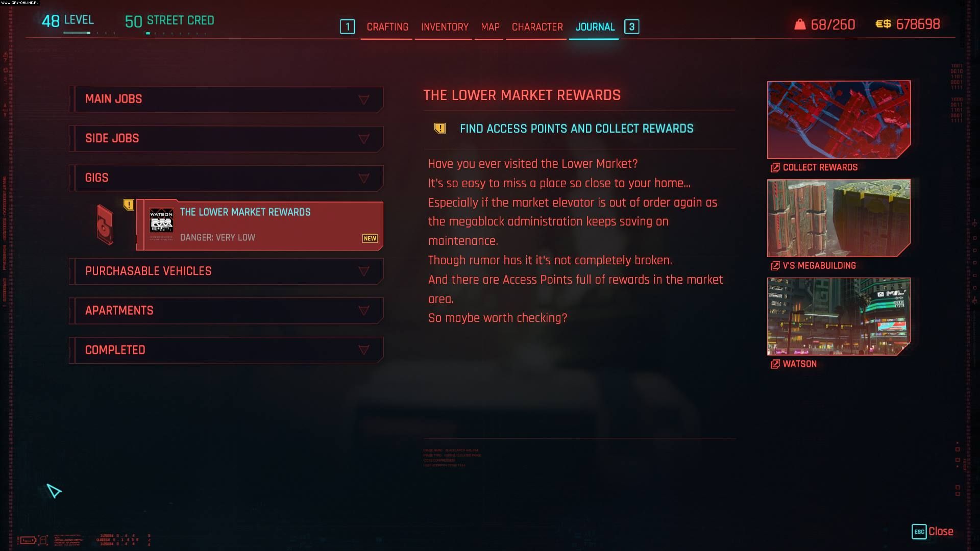 Niemniej sama droga do Lower Marketu jest banalnie prosta. Wejście, a dokładnie mówiąc winda, znajduje się niedaleko apartamentu V. Nie zadziała ona od razu – gracz musiał ją wpierw naprawić. Po tym wrota do tej tajemniczej lokacji staną otworem.