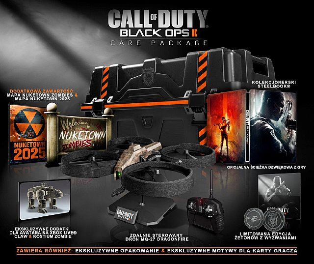 Ruszyła przedsprzedaż kolekcjonerskich wersji Call of Duty: Black Ops II. Ci, którzy chcieliby pobawić się sterowaną repliką drona bojowego będą musieli nieźle się wykosztować – edycja Care Package kosztuje ponad siedemset złotych.