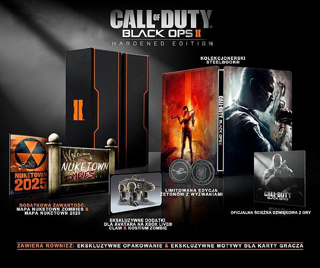 Najwięksi fani Call of Duty gotowi oddać koncernowi Activision wszystkie swoje pieniądze będą w siódmym niebie. Ruszyła przedsprzedaż edycji kolekcjonerskich Call of Duty: Black Ops II. Wydawca zdecydował się wypuścić kolekcjonerkę w dwóch wersjach: Care Package i Hardened. Ich sugerowana cena to odpowiednio 759,99 złotych i 339,99 złotych. Poniżej opisujemy, co można dostać za tak kosmiczne pieniądze: