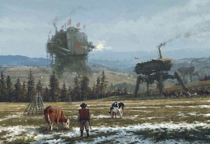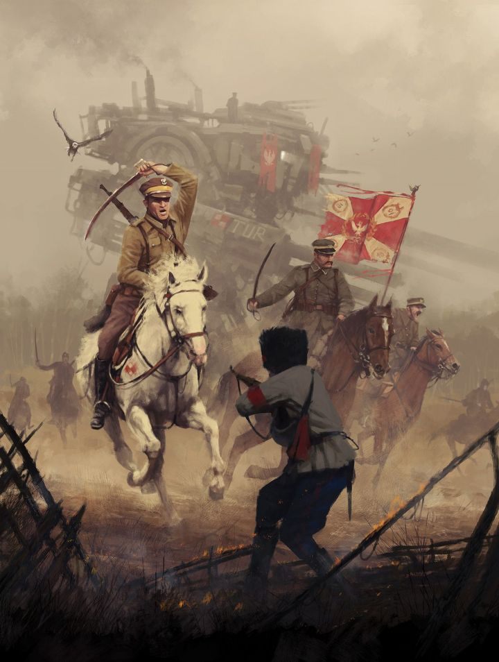 Wyobraźcie sobie Polskę z lat 20-tych ubiegłego wieku. Chłopi w strojach ludowych, wiejskie krajobrazy, ułani na koniach i… mechy. Tych ostatnich co prawda nie uświadczymy w źródłach historycznych, ale takie właśnie połączenie zrodziło się w umyśle Jakuba Różalskiego, grafika koncepcyjnego i autora dieselpunkowego uniwersum 1920+, przedstawiającego alternatywną historię przełomu XIX i XX wieku, w którym ludzkość zainwestowała zasoby naturalne i intelektualne w produkcję ogromnych maszyn kroczących. Ilustracje tego artysty (można je znaleźć w serwisie Art Station) zainspirowały grę planszową Scythe, którą w zeszłym roku ufundowano na Kickstarterze. To jednak nie koniec atrakcji.