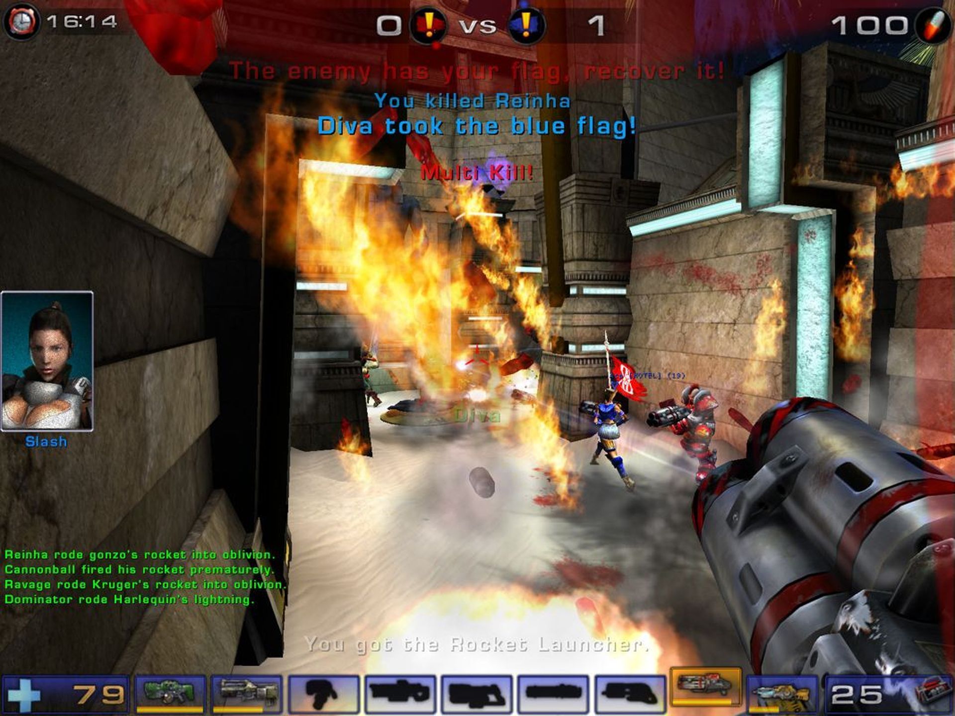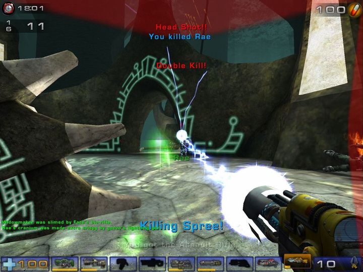 Zniknęła za to spluwa na odbijające się ostrza piły tarczowej. Moim zdaniem to wielka strata dla ludzkości. Może i w UT 2004 pojawiały się bardziej efektywne giwery, ale za to miotanie dyskami i przypadkowe oraz zamierzone headshoty dawały mnóstwo frajdy – serią takich ostrzy można było rozpętać w pierwszym Tournamencie niezłe piekło. Którym znów towarzyszyły przepięne obelgi bojowe botów, opętańcze komentarze narratora i niezła, ostra muzyka elektroniczna.
