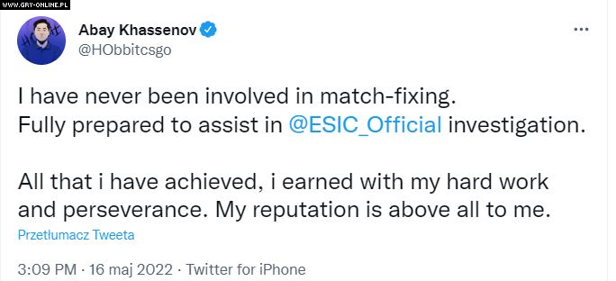 Główny zainteresowany, który na aferze może ucierpieć najbardziej, również zabrał głos. HObbit w wpisie na Twitterze zaprzeczył doniesieniom byłego kolegi z drużyny, jednocześnie zapewnił, że będzie walczyć o swoje dobre imię.