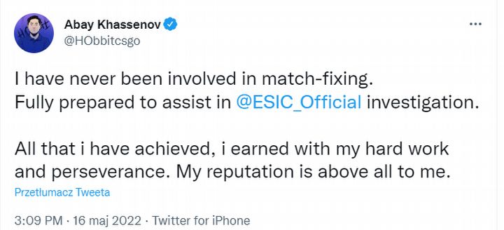 Oskarżenia padają w stronę zawodnika jednej z najlepszych drużyn na globie – Abaja „HObbit’a” Chasenowa z Cloud9. Dowodów odnośnie jego nieuczciwych praktyk z przeszłości dostarczył były kazachski gracz oraz trener – Rustam „5TRYK#R” Alimkulow.