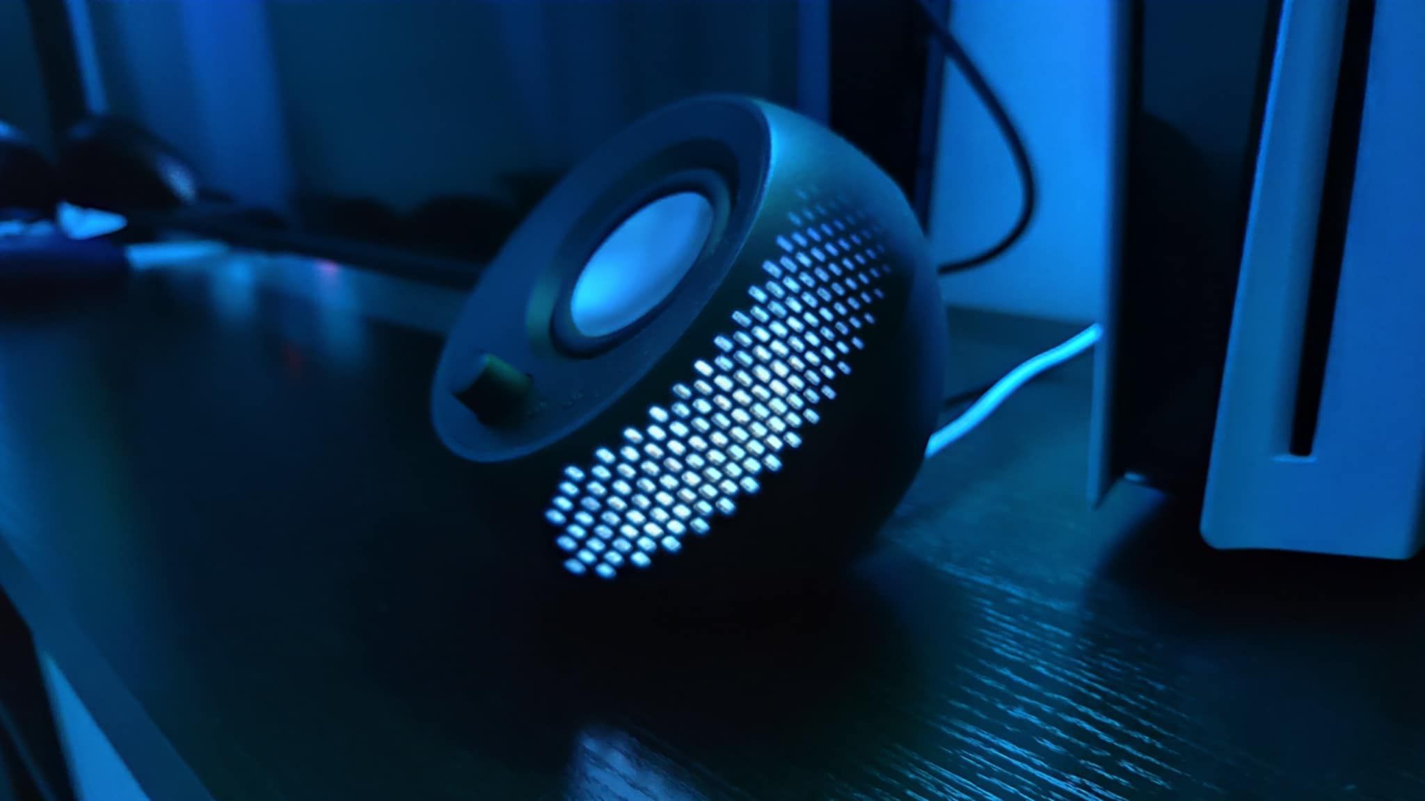 Nie będę też ukrywał, że jestem wzrokowcem i lubię ładny sprzęt. I tu muszę się przyznać, że nieco „futurystyczny” wygląd głośników Creative Pebble X Plus przypadł mi do gustu. Do tego mają podświetlenie, a jak wiadomo, profesjonalny sprzęt dla graczy musi się świecić, inaczej nie ma się skilla. Co świetne, jest ono na tyle delikatne, że w nocy nie przeszkadza, nawet gdy mam je w pobliżu łóżka. Zostawiam je włączone jako swoiste... lampki nocne. Wiem, że to błahostka, ale też całkiem przyjemny dodatek, gdy w środku nocy potrzebuję opuścić miejsce odpoczynku.