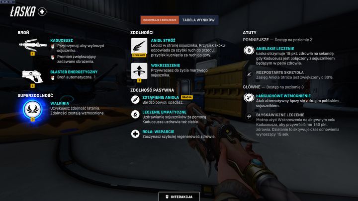 Dlaczego napisałem w „normalnych warunkach”? Po zamianie postaci nowy bohater ma na początku poziom 1 z zerowymi postępami na poczet atutu. Niemniej każdy heros, którym zagramy w danej rundzie, będzie zapamiętywał swoje postępy. Jeśli więc wybraliśmy już raz Tracer, dotarliśmy nią do poziomu 3 i zdobyliśmy dla niej atuty, wrócimy do gry tą bohaterką już na poziomie 3 i wyposażoną w 3 talenty.