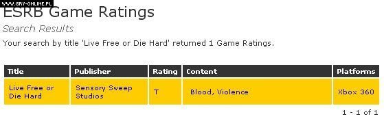 Do bazy danych amerykańskiej organizacji Entertainment Software Rating Board, zajmującej się klasyfikowaniem gier komputerowych pod kątem kategorii wiekowych, została wpisana nowa gra dedykowana konsolom Xbox 360. Jej tytuł – Live Free or Die Hard – sugeruje, że będzie ona nawiązywać do najnowszej odsłony filmowego cyklu o przygodach nieustraszonego policjanta, Johna McClane’a.