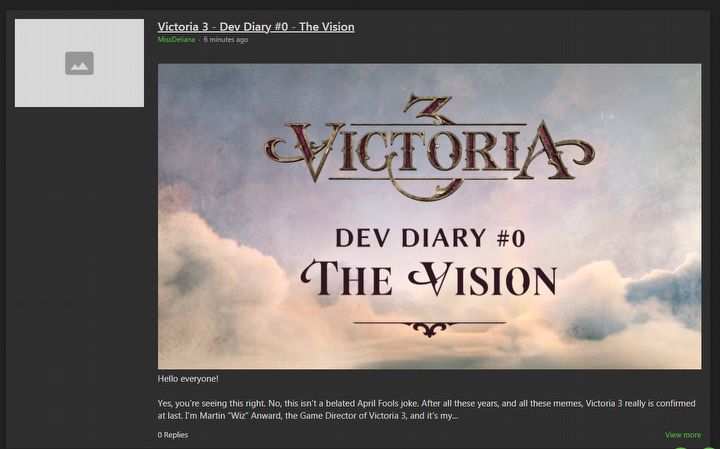 Na forum Paradoxu najprawdopodobniej przez pomyłkę pojawił się pierwszy dziennik deweloperski, który wskazuje, że nową strategią firmy Paradox będzie Victoria 3. Tytuł może zostać zapowiedziany dziś podczas wydarzenia PDXCON.