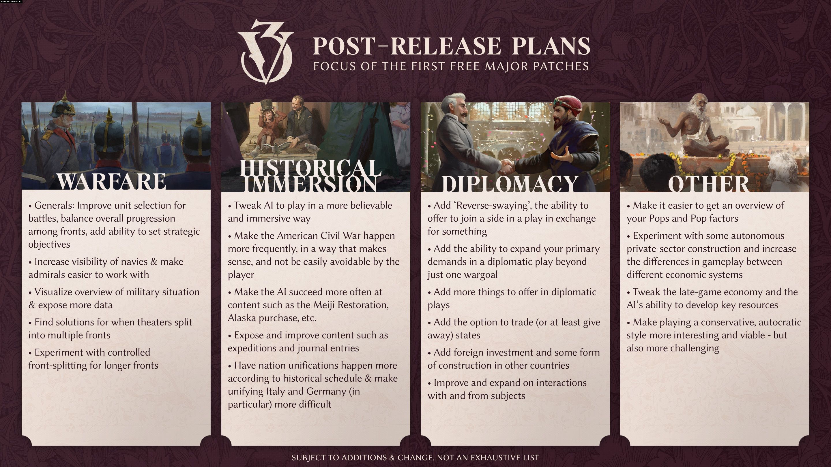 Co istotne, plany te mogą się dynamicznie zmieniać – Paradox zapewnia bowiem, że cały czas będzie wsłuchiwał się w głos społeczności. Niemniej wydaje się, iż obecne zamierzenia twórców odzwierciedlają życzenia fanów, a co za tym idzie – nie powinny ulec większym modyfikacjom.