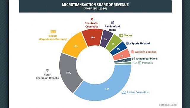 Analiza rynku autorstwa Ed Zhao poświęcona była korzyściom płynącym z modelu free-to-play w stosunku do tytułów sprzedawanych tradycyjnie. Wśród nich wymienił ogromną liczbę zainteresowanych (przekładającą się na większe zaangażowanie oraz społeczność skupioną wokół danej produkcji), jak również potencjalnie nieograniczone dochody, związane z obecnymi w tego typu produkcjach mikropłatnościami. Zdaniem autora potencjał tego modelu płatności najlepiej wykorzystują gry z gatunku MOBA, co wynika m.in. z mechanizmów rozgrywki. Nacisk na opanowanie jednego czempiona sprawia, że z czasem gracze czują się – według Zhao – bardziej przywiązani do swoich ulubieńców. To zaś uwidacznia się w kupowaniu przez graczy tzw. vanity items (przedmiotów niespełniających żadnej praktycznej funkcji w grze), przede wszystkim dodatków kosmetycznych. Wskazuje jednocześnie, że MOBA mają w tym aspekcie przewagę nad chociażby FPS-ami, jako że ukazanie rozgrywki z perspektywy trzeciej osoby pozwala stale podziwiać awatara gracza.
