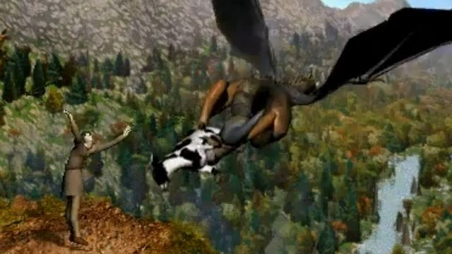 Jeśli użyjemy go na przeciwniku lub dowolnym innym bohaterze niezależnym, wówczas odtworzy się krótka animacja, na której obok drwala przemierzającego Wybrzeże Mieczy przelatuje wiwerna trzymająca w szponach krowę. Gdy filmik się zakończy, owa krowa spada na głowę oponenta, rozrywając go przy tym na strzępy. Wszystko to możecie obejrzeć na poniższym materiale dostępnym w serwisie YouTube.