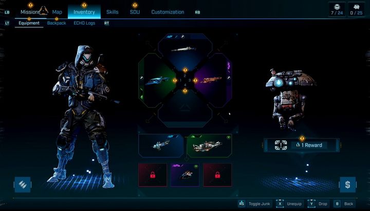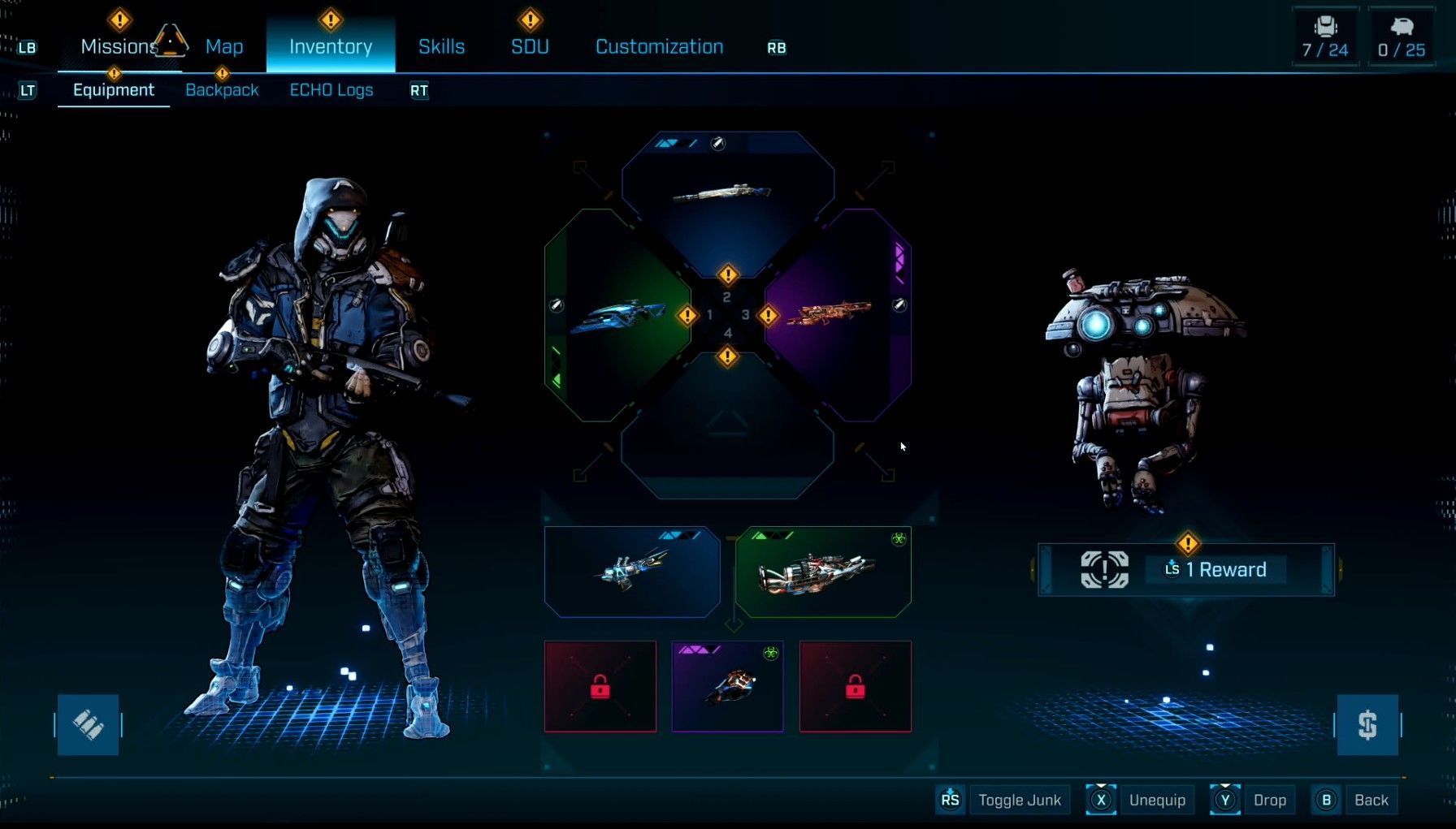 Interfejs został przebudowany i jest bardziej czytelny oraz futurystyczny.Borderlands 4, 2K Games, 2025.