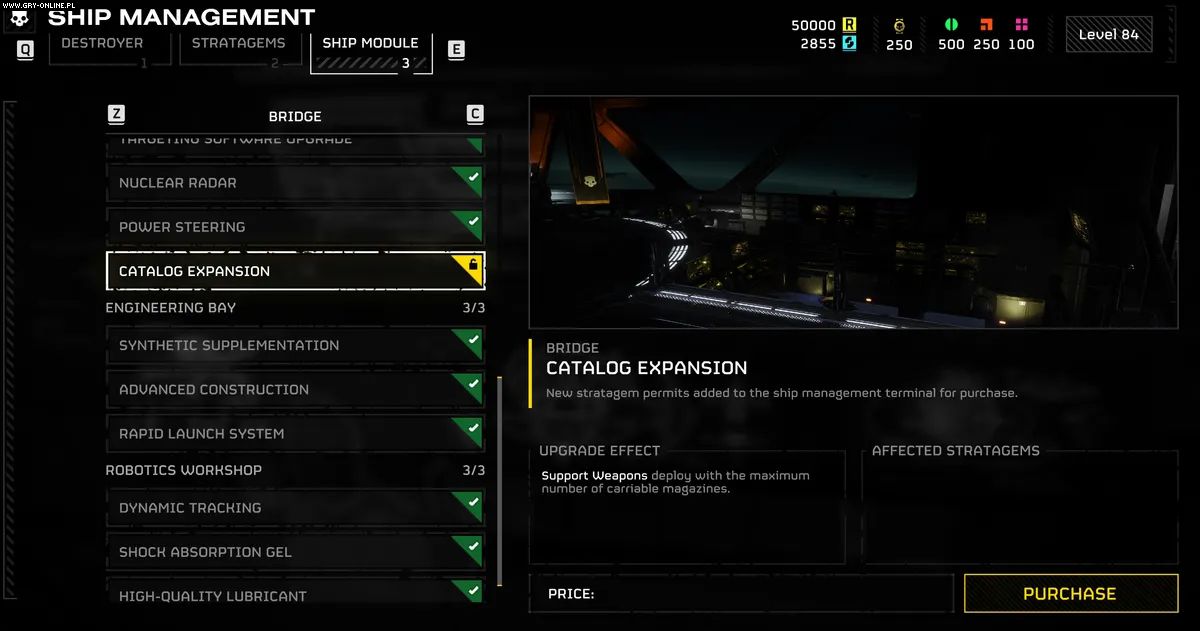 Ministerstwo Prawdy potwierdza, że nieuczciwy przedmiot o nazwie „rozszerzenie katalogu" jest tymczasowo widoczny w menu zarządzania statkiem i zgodnie z przepisami instruujemy wszystkich Helldiverów, aby unikali go do odwołania. Ministerstwo Prawdy nie może potwierdzić niezawodności, bezpieczeństwa ani pochodzenia tego przedmiotu.