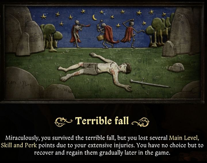 Tym samym gra informuje nas, że z uwagi na odniesione rany utraciliśmy wiele z naszych wcześniejszych umiejętności – nie mamy wyboru i musimy od teraz regenerować zdrowie i odzyskiwać powoli zdolności. Twórcy połączyli więc aspekt „resetu” z awansem do wyższej ligi. Henryk to wytrawny wojownik, ale po prostu będzie musiał wydobrzeć.