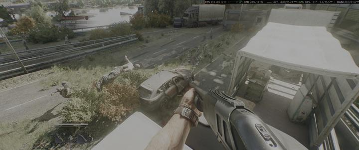 Gra znakomicie współpracuje też w zasadzie ze wszystkimi technikami upscalingu. Choć wydajność jest na tyle dobra, że możecie grać bez DLSS, to zdecydowanie polecam włączyć go nawet w trybie jakości, bo wygląda znacznie lepiej niż domyślny TAUU (skutkuje sporym rozmazaniem i smużeniem) i nieco lepiej od FSR czy XeSS, które powodują sporą niestabilność obiektów w ruchu. Szczególnie widoczne jest to na przykładzie ogrodzeń czy drutów kolczastych, które „szumią” z każdym innym upscalerem poza DLSS.
