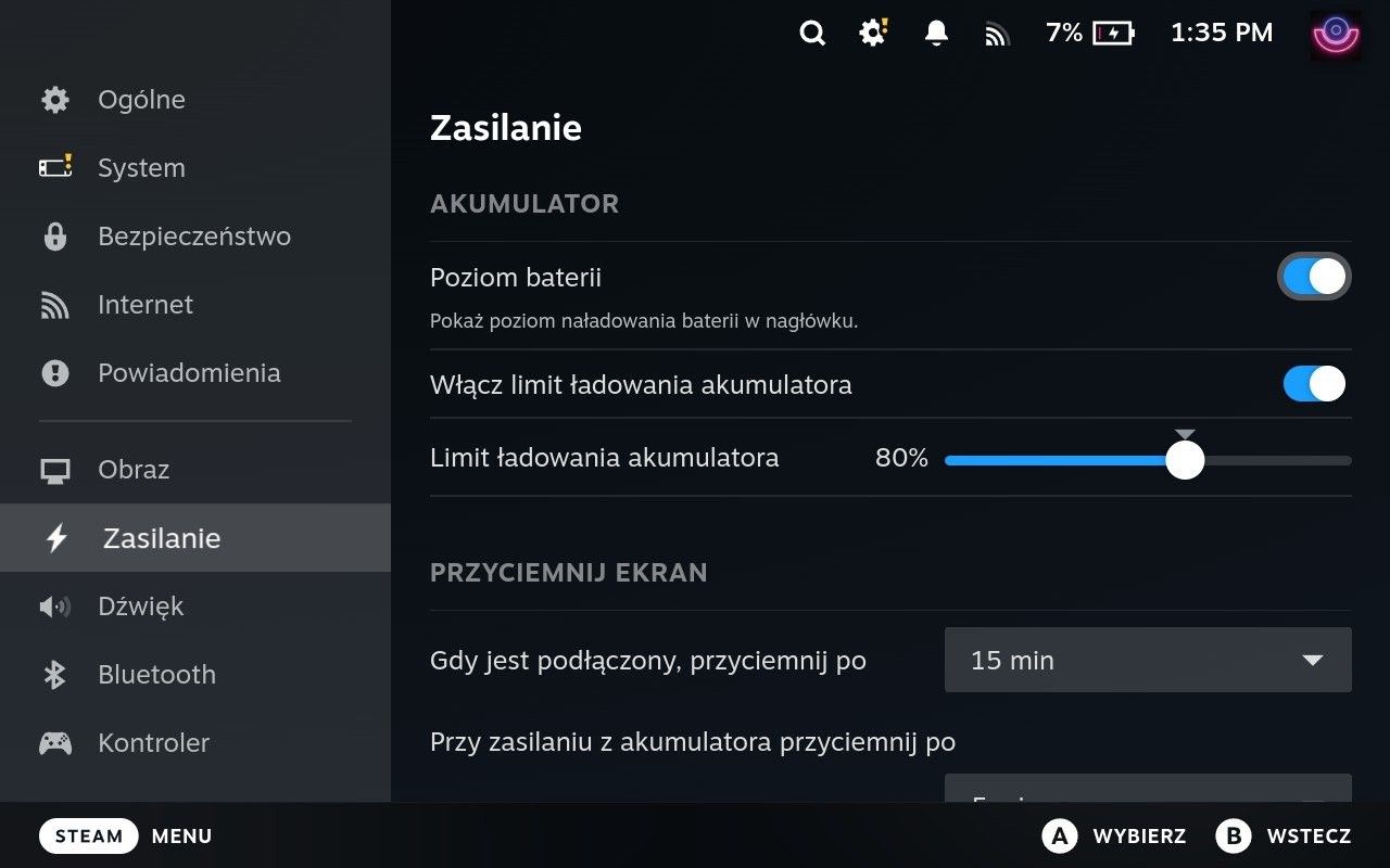 Mamy na myśli kontrolę ładowania baterii Steam Decka. Doniesienia o tym, że Valve planuje wprowadzić taką opcję pojawiły się już w styczniu tego roku. Jak można się domyślić, dedykowaną funkcję uruchomimy z poziomu ustawień konsoli, co Valve tłumaczy w opisie aktualizacji 3.7.8 Steam OS: