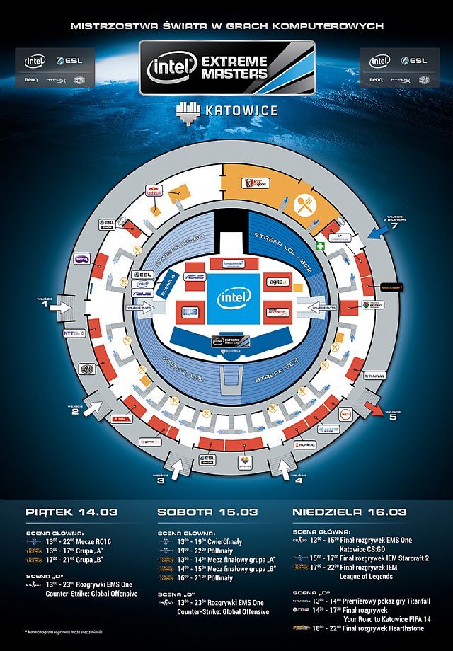 W przyszłym tygodniu, w dniach od 14 do 16 marca w katowickim Spodku odbędzie się impreza Intel Extreme Masters. Jej organizatorzy udostępnili szczegółowy plan i pokazuje on, że na odwiedzających czeka szereg atrakcji, w tym turnieje pod szyldem IEM, rozgrywki w Counter-Strike: Global Offensive w ramach EMS One Katowice, liczne mniejsze zmagania oraz konkurs cosplayów.