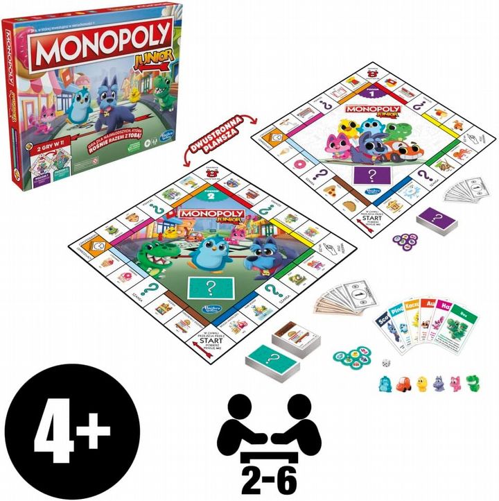Monopoly Junior to uproszczona, dziecięca wersja klasycznego Monopoly. Jest przy tym szybsza, lżejsza i zdecydowanie bardziej kolorowa. Zasady zaprojektowano tak, by nawet kilkuletnie dzieci mogły wejść w świat planszówek bez stresu i dłuższego tłumaczenia zasad. Każdy gracz wybiera pionek, dostaje trochę startowej gotówki i rusza po planszy, kupując pola przedstawiające różne atrakcje: lodziarnię, kino, wesołe miasteczko i inne miejsca, które łatwo wywołują uśmiech.