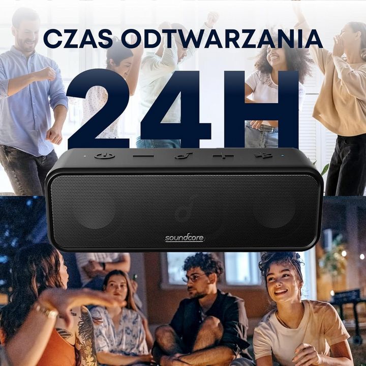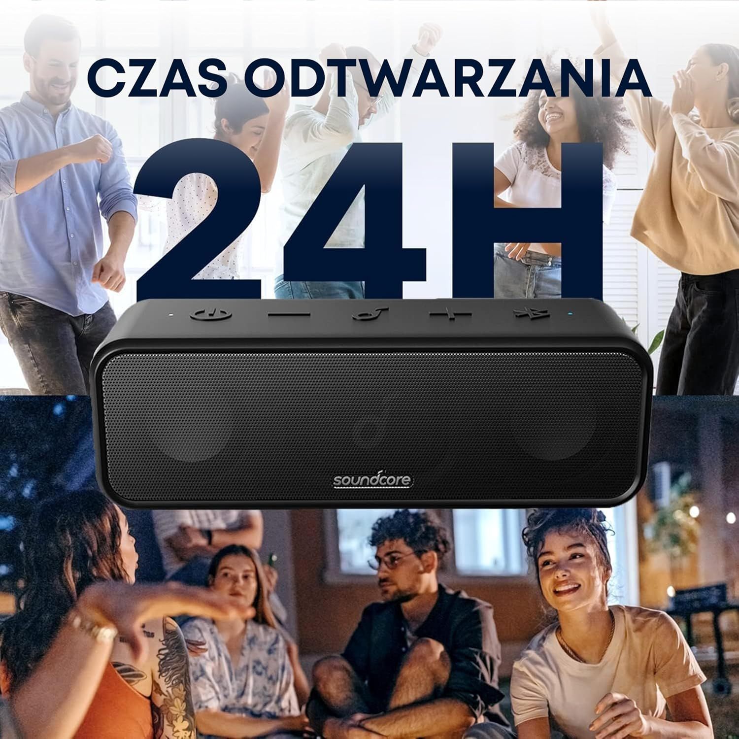 Anker soundcore 3 to przenośny głośnik Bluetooth z mocnym dźwiękiem, długą baterią i wodoodporną konstrukcją. Idealny do domu i na wyjazdy!