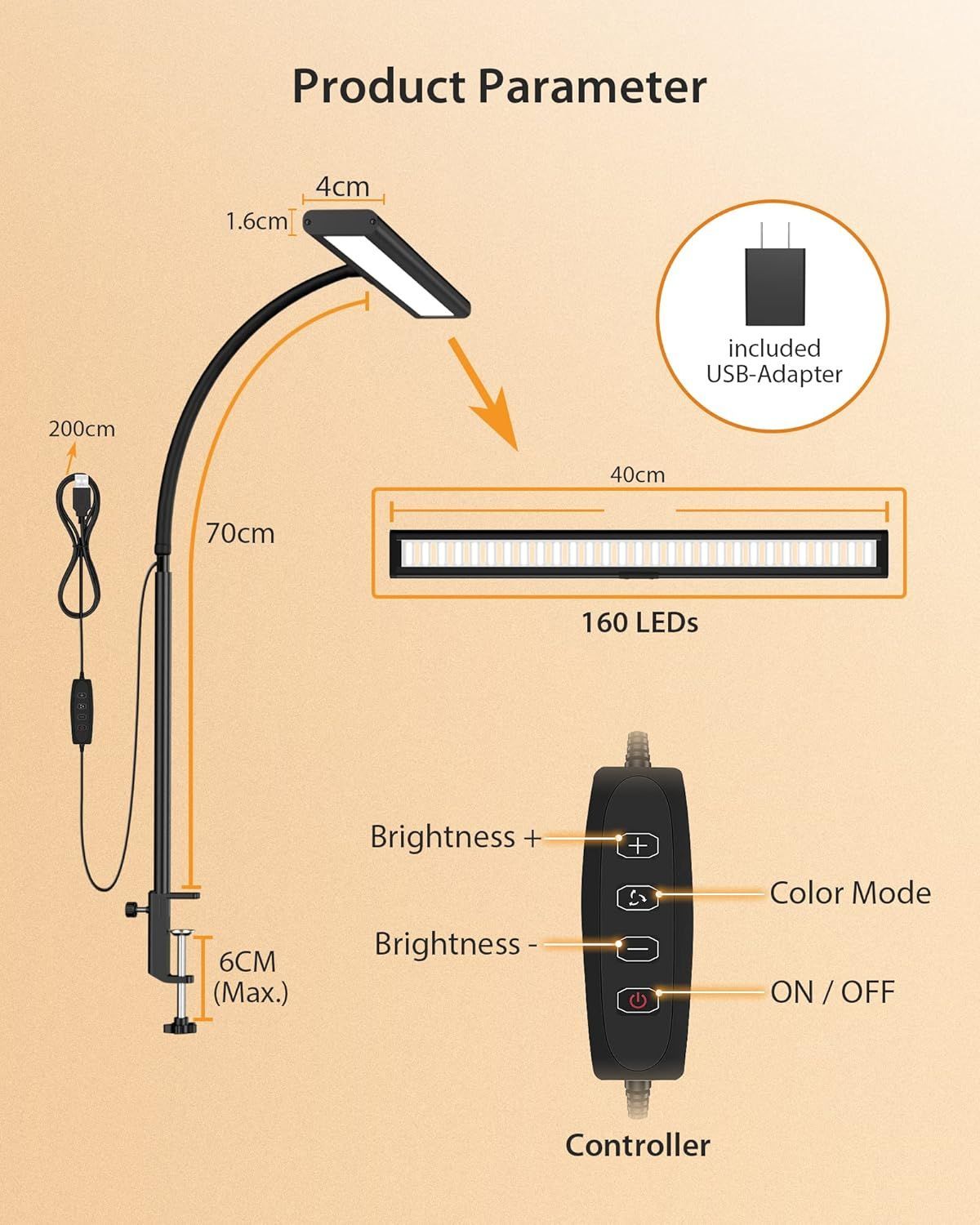 Nowa wersja lampy została nieco podrasowana. W przeciwieństwie do wielu innych lamp LED ten model oferuje giętą, 70-centymetrową szyjkę, która pozwala ustawić światło dokładnie tam, gdzie go potrzebujesz. Kąt świecenia, wysokość, pozycja – wszystko regulujesz płynnie i bez użycia siły, dzięki czemu lampa świetnie sprawdza się zarówno w pracy z komputerem, jak i przy ręcznych projektach. A ponieważ konstrukcja została wyposażona w mocny zacisk, lampę można zainstalować na krawędzi biurka, półki, regału czy nawet parapetu – oszczędzając przy tym cenną przestrzeń roboczą.