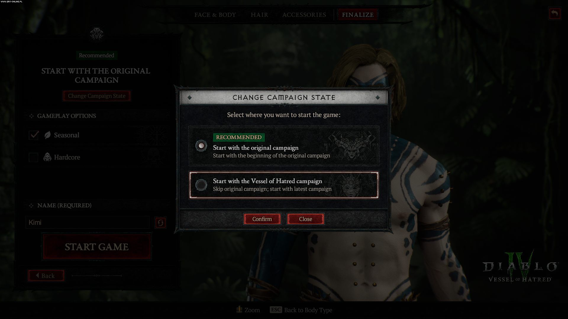 Po wybraniu opisywanej przez nas opcji obejrzycie intro DLC Vessel of Hatred (zamiast intra podstawowej kampanii) i od razu rozpoczniecie się akt 7. Pozwoli to Wam zaoszczędzić dużo czasu, ale są też pewne ograniczenia: