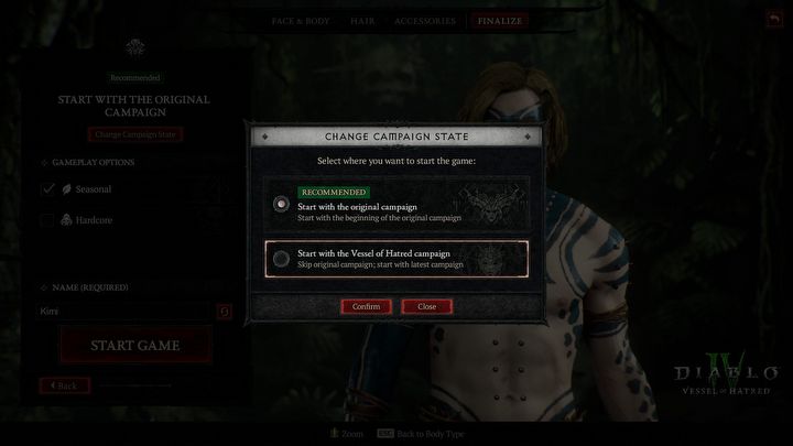 Ciekawszym rozwiązaniem jest przeskoczenie od razu do kampanii dodatku, a jest to możliwe podczas tworzenia nowej postaci w menu głównym gry. Jest to rekomendowany ruch jeżeli znacie już dobrze podstawkę oraz jeśli chcecie stworzyć bohatera z nowej klasy Spirytysta.