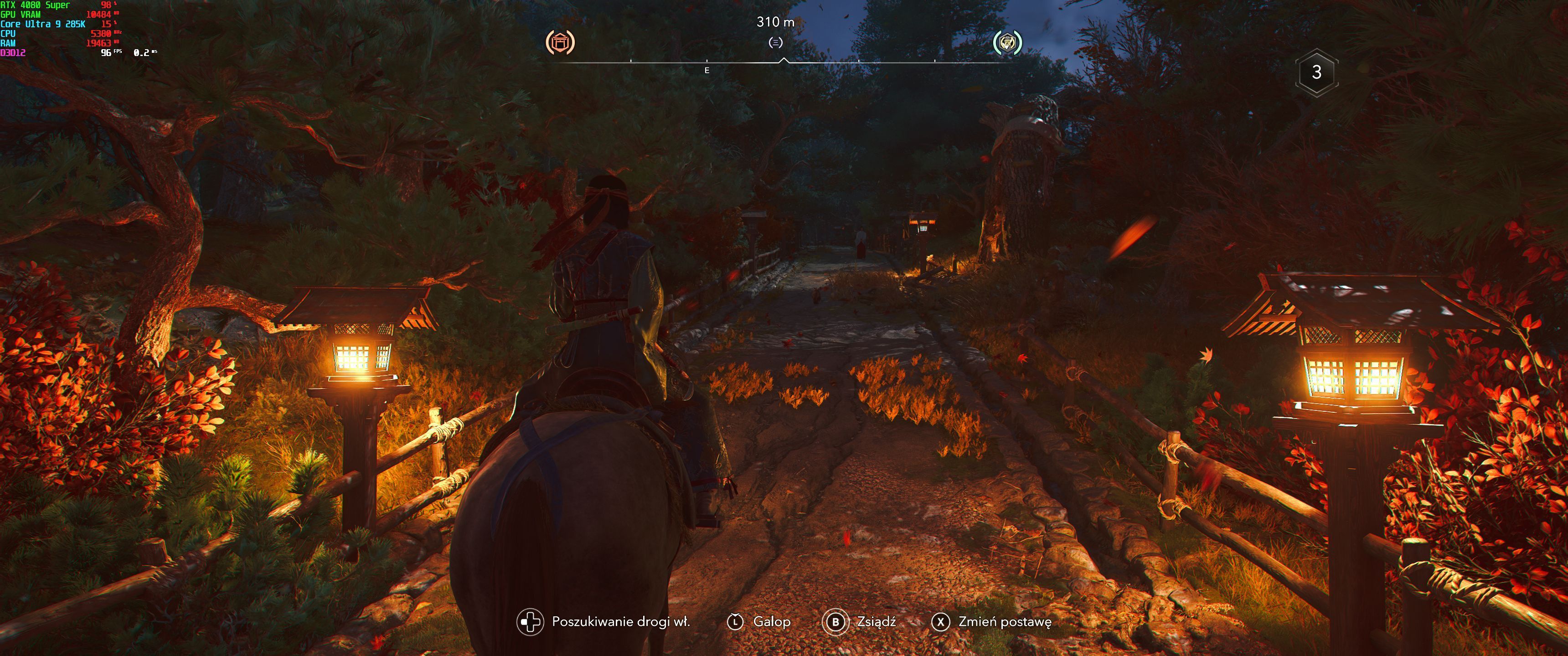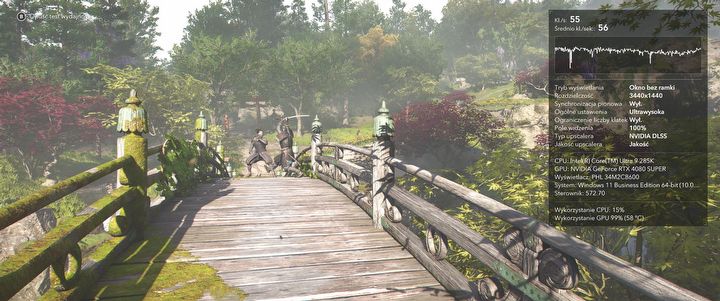 Włączenie generatora klatek spowodowało, że w moim przypadku z około 55 fpsów w centrum Kioto (jednym z najbardziej wymagających miejsc w grze) mogłem liczyć na nieco ponad 90 klatek na sekundę, a poza miastem nawet na 120-130 fpsów, w zależności od tego, gdzie akurat wędrowałem.