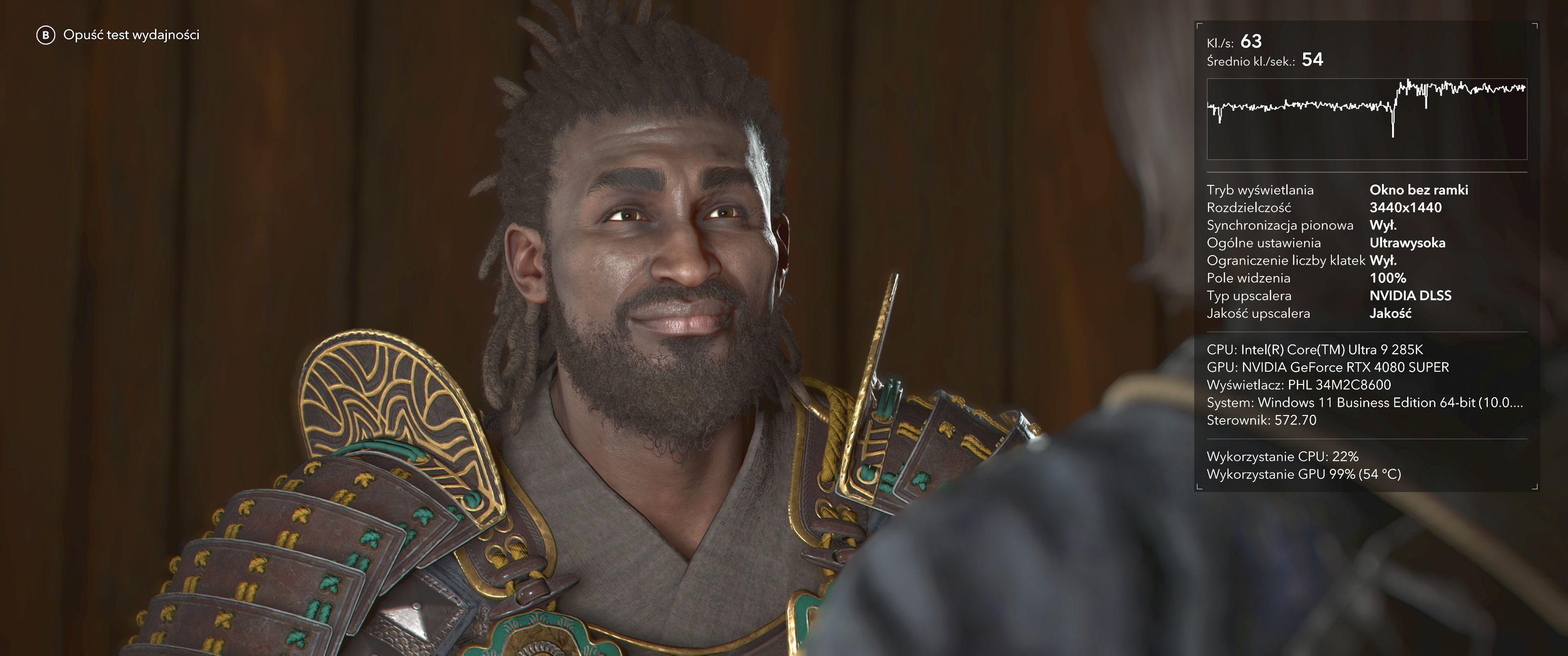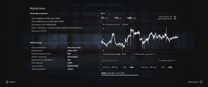 Moja platforma testowa składająca się z procesora Intel Core Ultra 9 285K, karty graficznej Nvidia GeForce RTX 4080 Super i 48 GB pamięci RAM nie dała rady zagwarantować mi 60 fpsów na ustawieniach ultra w rozdzielczości 3440 na 1440 pikseli i to już z włączonym DLSS-em w trybie jakości. Jedynym sposobem na uzyskanie 60 klatek na sekundę w każdej lokacji było zejście z upscalingiem do poziomu wydajności. Wtedy było już widać pierwsze drobne ślady upscalingu, ale muszę przyznać, że DLSS z modelem transformer radzi sobie doskonale i było to więcej niż grywalne doświadczenie.