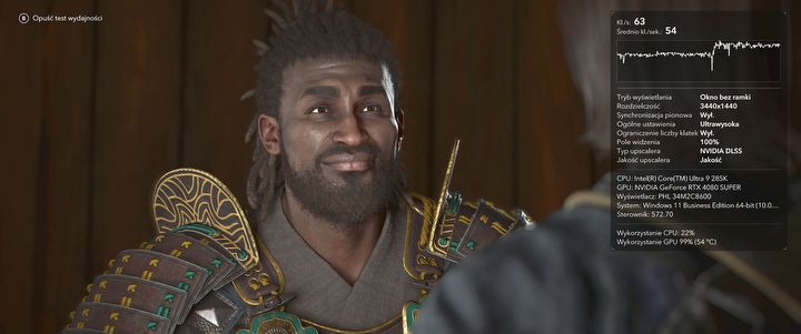 Co ciekawe, wszystko to odbyło się bez typowych dla tej technologii wad. Nie odczułem praktycznie w ogóle zwiększonego opóźnienia, obraz nie ulegał rozrywaniu, a jego stabilność była na wzorowym poziomie i to nawet w pobliżu źródeł światła takich, jak ogień, co powodowało spore problemy przy Indiana Jonesie. Assassin's Creed: Shadows jest w mojej opinii oknem wystawowym dla frame generation, gdyby w każdej grze ta technika działała tak dobrze, to naprawdę byłbym zachwycony.