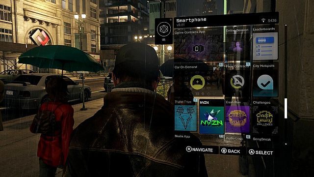 Na koniec dzielimy się z Wami udostępnionym w tym samym czasie screenshotem, na którym twórcy pokazują, jak będzie wyglądało menu podręczne w Watch Dogs (obrazek widnieje tuż powyżej). Jak można było się spodziewać, ustylizowano je na ekran smartfona – mamy więc do czynienia z rozwiązaniem podobnym do tego zastosowanego w Grand Theft Auto V, z tą różnicą, że w dziele Ubisoftu opcji jest więcej, a menu zajmuje nieco większą część pola widzenia.