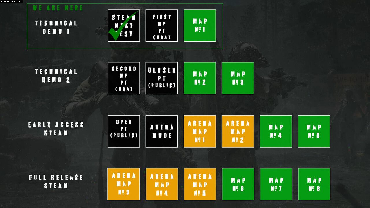 Ten taktyczny FPS pojawił się na ostatnim festiwalu Steam Next, który trwał od 19 do 26 czerwca. Twórcy przedstawili nam techniczne demo We The People, które zwróciło uwagę około 2 milionów użytkowników, jak twierdzi Small Indie Company. Sam udział w tym festiwalu był pierwszym etapem opublikowanej mapy rozwojowej produkcji.