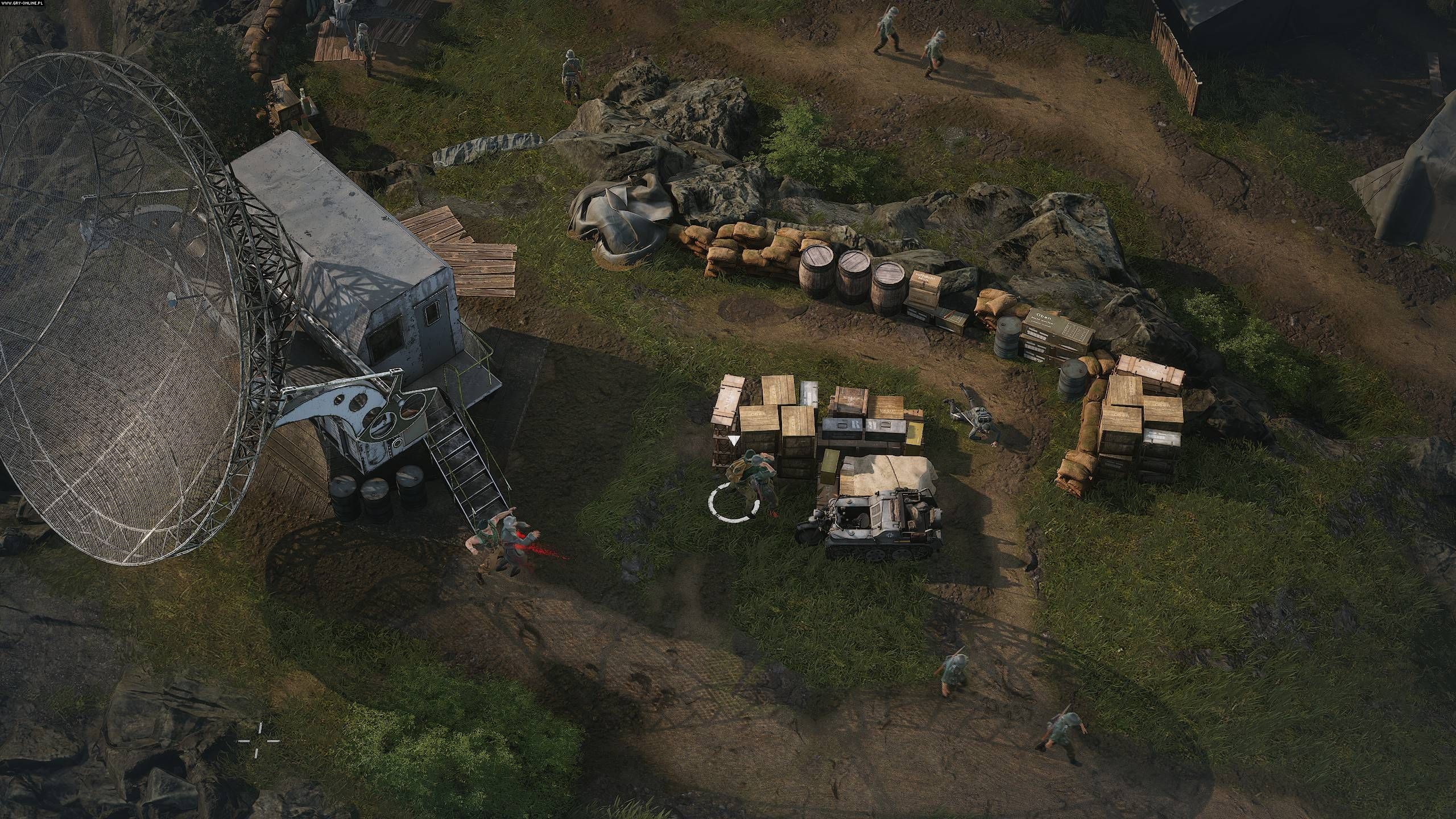 Oczywiście dróg przejścia danego fragmentu mapy jest kilka – możemy iść na „YOLO” (nie polecam) albo przekraść się z lewej, z prawej, z góry, z dołu, przez krzaki, pod mostem, nurkując w wodzie, wspinając się na mur, po dachu lub środkiem budynku – typowe Commandos! Tak więc będziemy robić to, co robiliśmy w starych odsłonach cyklu lub grach typu Desperados, Robin Hood: Legenda Sherwood, Shadow Tactics czy we względnie niedawnym War Mongrels, czyli odwracać uwagę, podrzynać gardła, przenosić ciała, wspinać się, kryć przed wzrokiem strażników, a przede wszystkim obserwować ścieżki patrolowe, aby rozgryźć łamigłówkę i podejść Niemców bez wszczynania alarmu. Nic odkrywczego, ale wykonane dobrze wystarczy fanom gatunku.