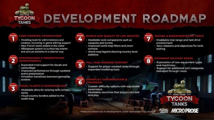 Miała być II wojna światowa, zimna wojna i czasy współczesne. Zamiast tego twórcy Arms Trade Tycoon: Tanks zaprezentowali nową mapę rozwoju, która skupia się niemal wyłącznie na narzędziach moderskich. Fani obawiają się najgorszego: porzucenia gry.